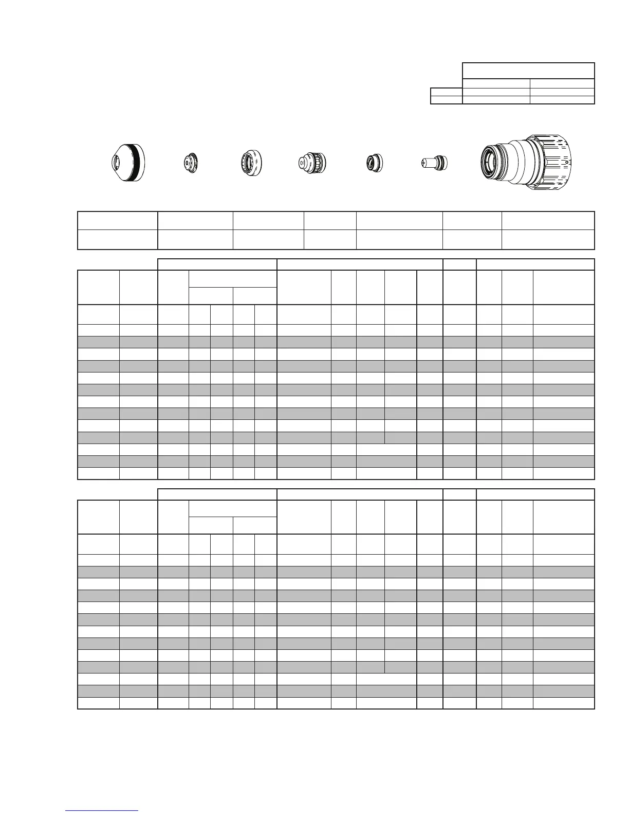 BOLD TYPE indicates maximum piercing parameters. BOLD ITALIC indicates edge starts only.