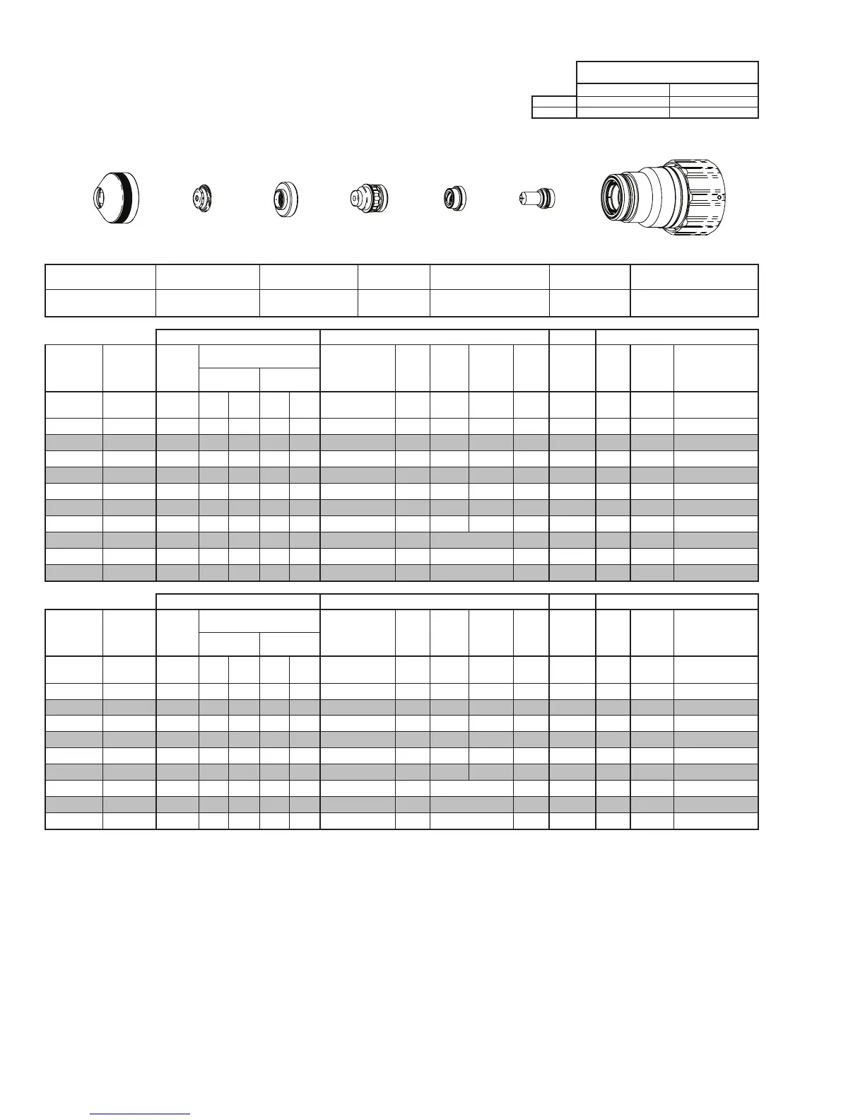 BOLD TYPE indicates maximum piercing parameters. BOLD ITALIC indicates edge starts only.