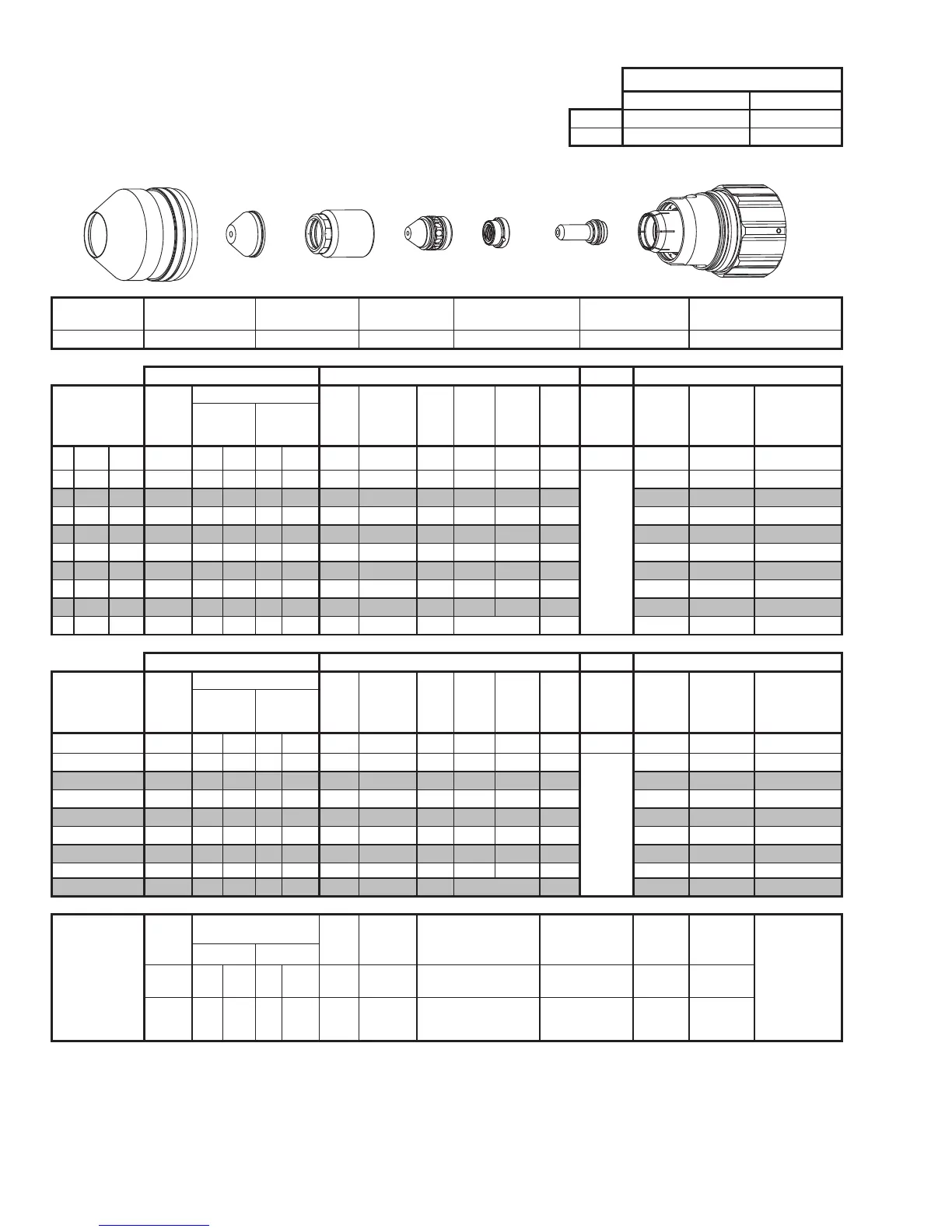BOLD TYPE indicates maximum piercing parameters. BOLD ITALIC indicates edge starts only.
