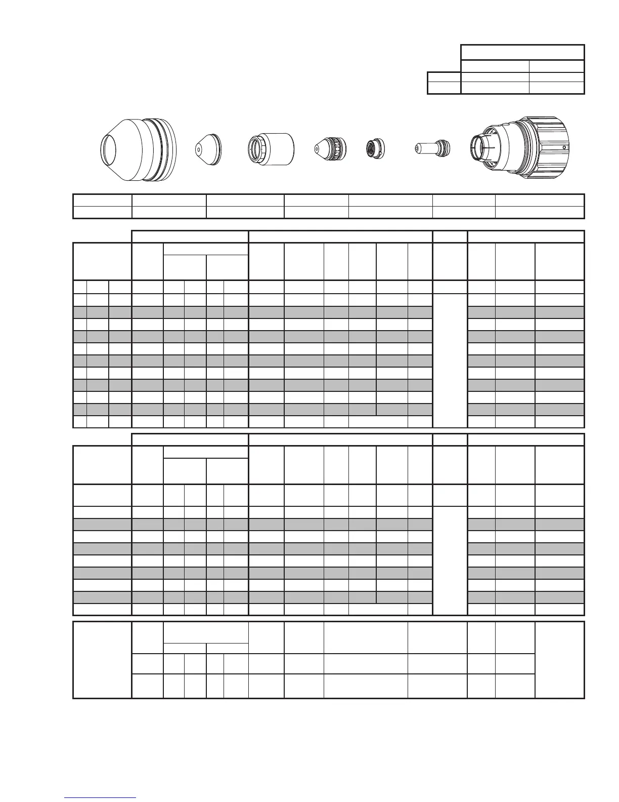 BOLD TYPE indicates maximum piercing parameters. BOLD ITALIC indicates edge starts only.
