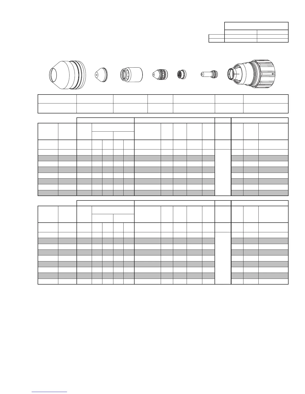 BOLD TYPE indicates maximum piercing parameters. BOLD ITALIC indicates edge starts only.