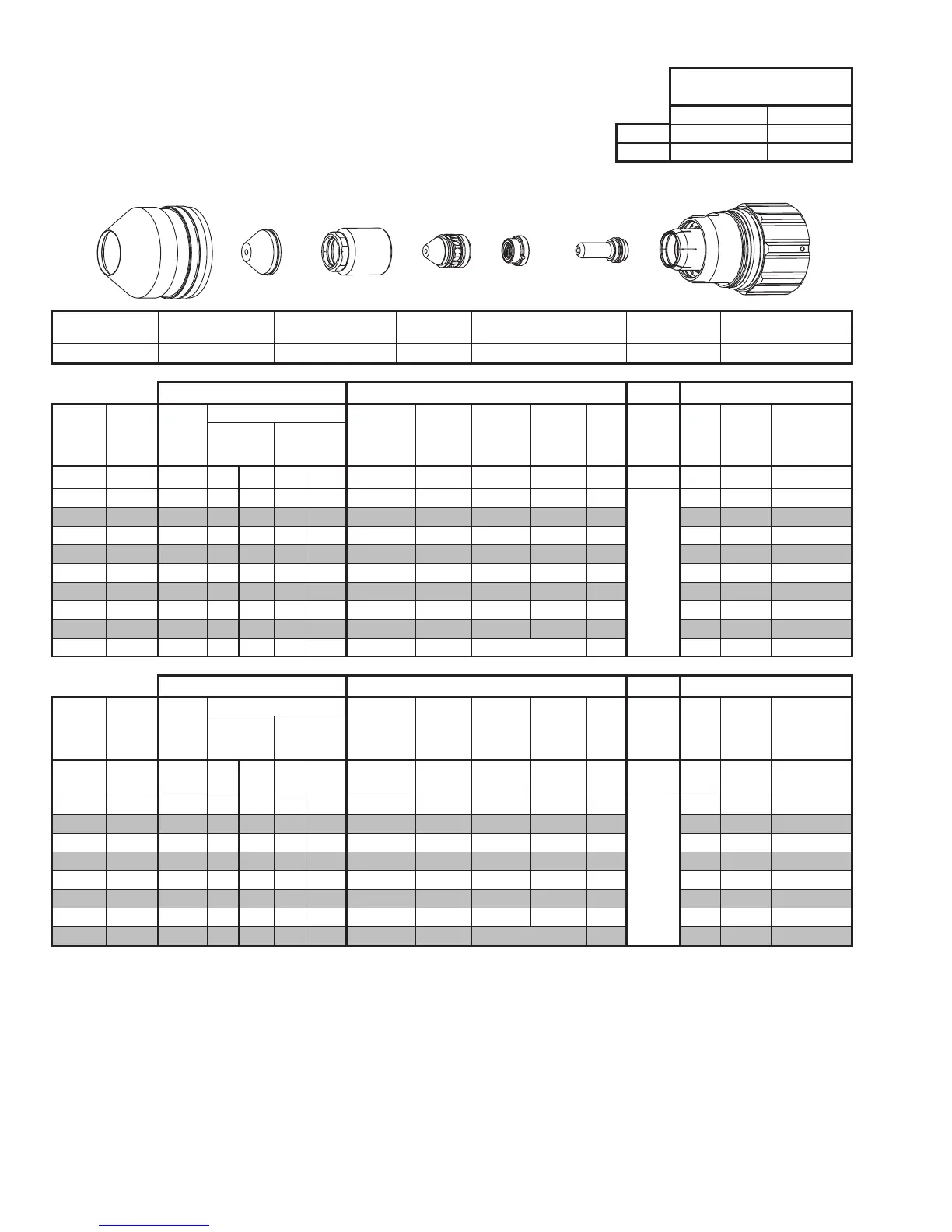 BOLD TYPE indicates maximum piercing parameters. BOLD ITALIC indicates edge starts only.