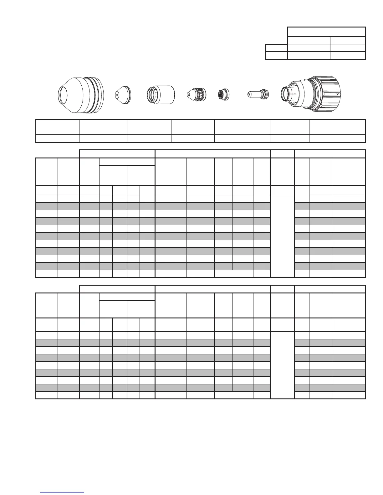 BOLD TYPE indicates maximum piercing parameters. BOLD ITALIC indicates edge starts only.