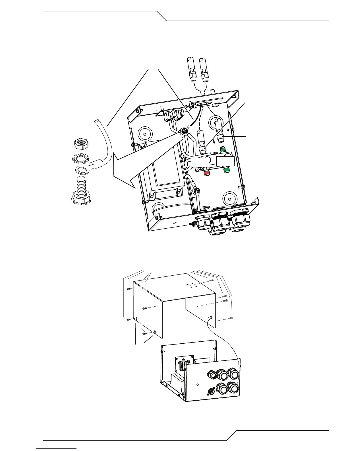 2. Reinstall the Arc Starter Cover. Ensure that the ground wire is not crimped between the cover and the base.