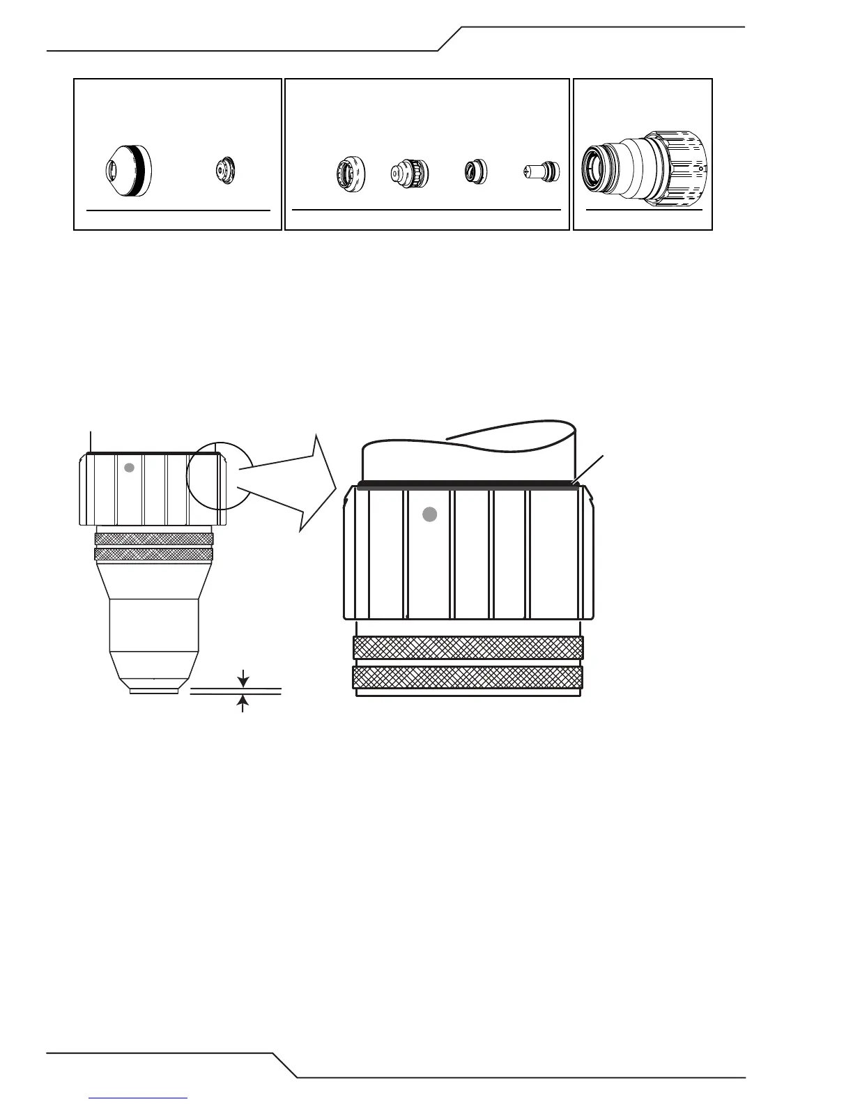 into place and the cartridge assembly should touch the large O-ring on the torch body.