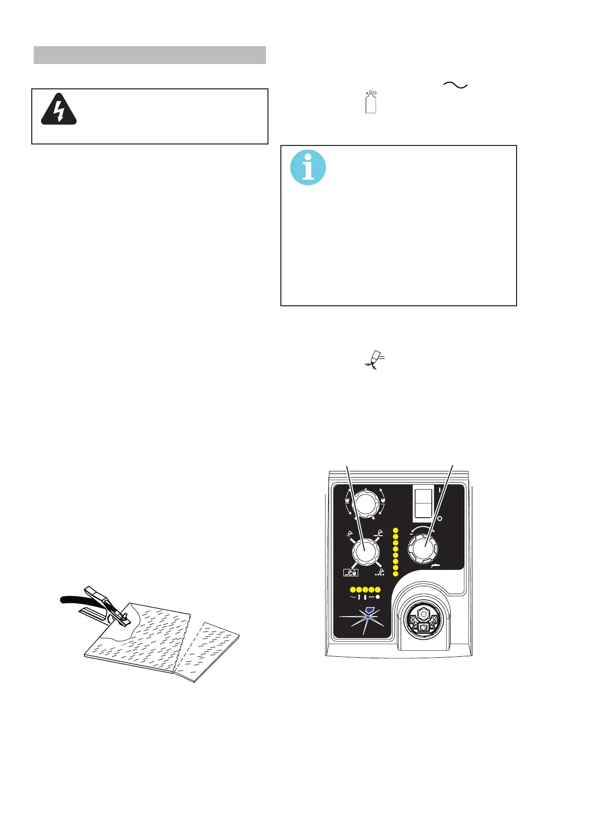 Clamp the work cable to the workpiece or cutting