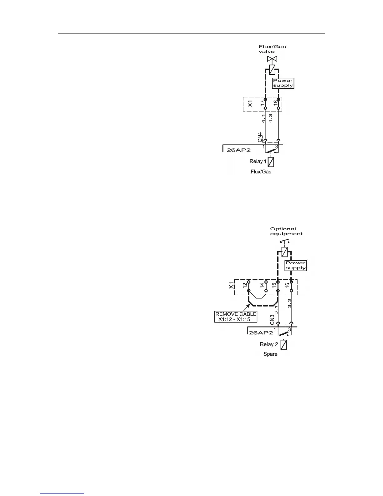 • Connect to terminal block X1 at 17 and