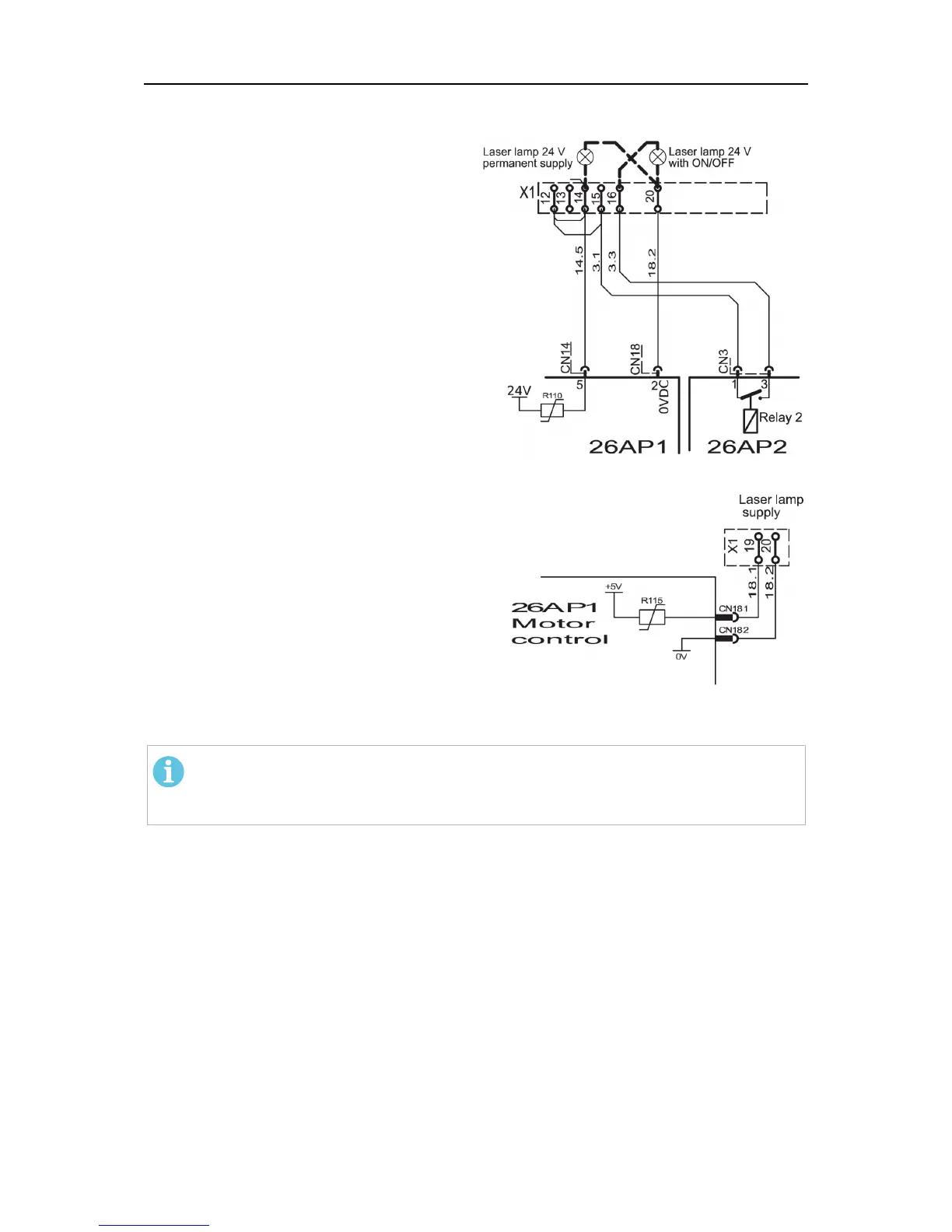 The laser lamp supply is powered with +24 V