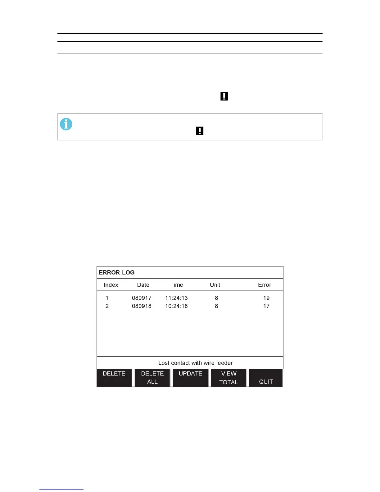 All faults that occur when using the welding equipment are documented as error messages in