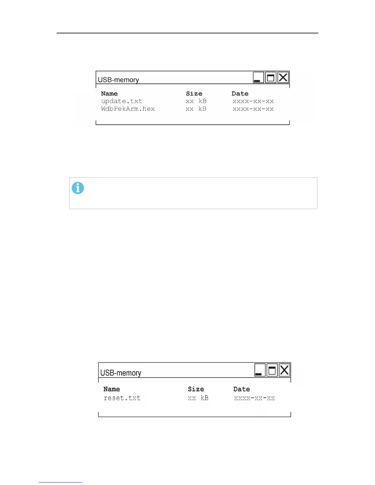 “Thefile“update.txt””, page57) and the new software (e.g."WdbPekArm.hex"). The