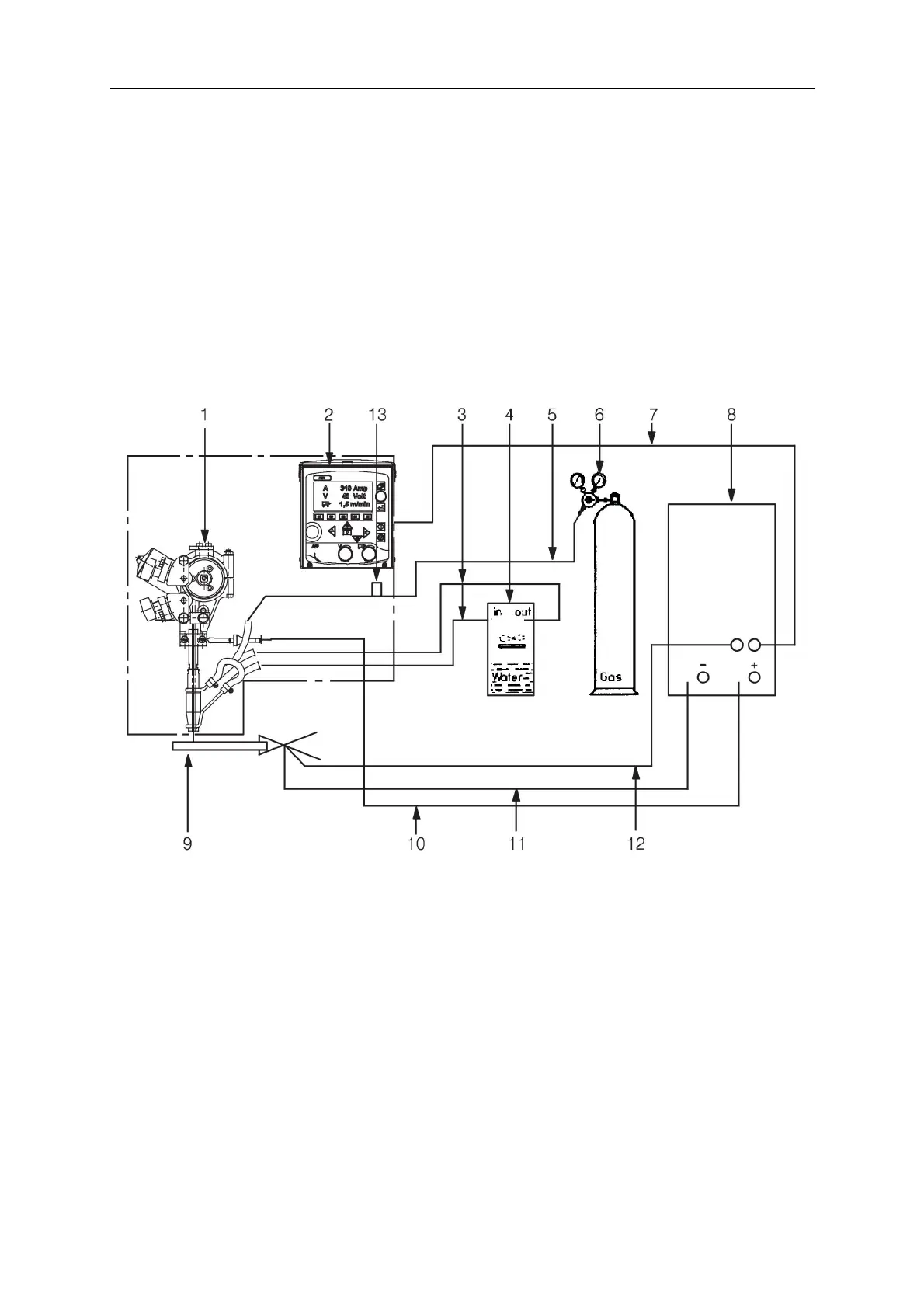 3. Connect the welding cable (10) between the power source (8) and the automatic