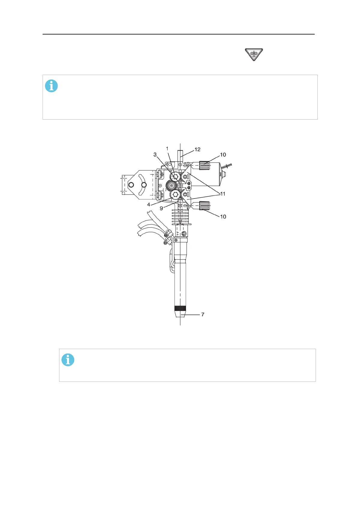 1. Check that the feed rollers (1, 4) and the contact nozzle (7) has the correct dimension