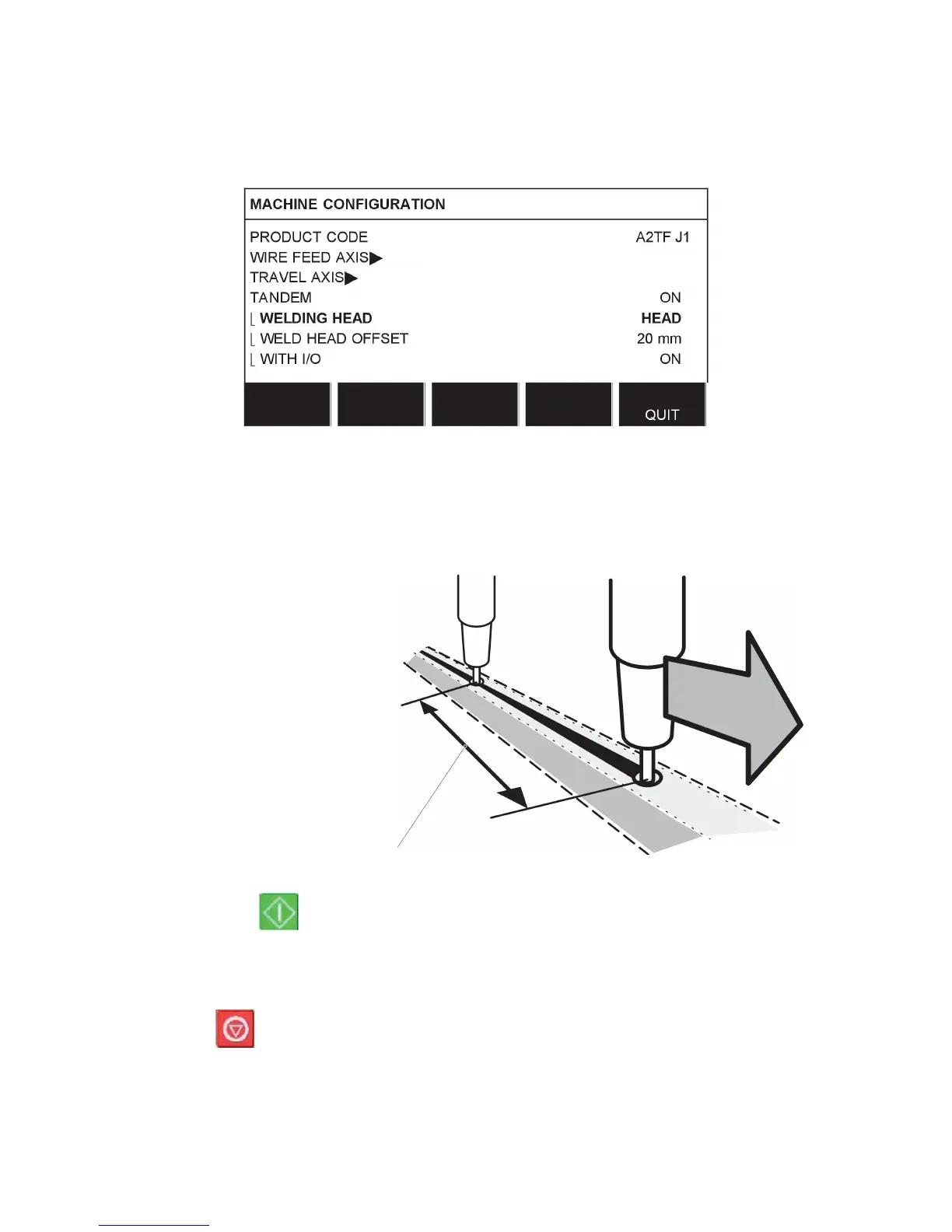 Press Stop, for welding head1.
