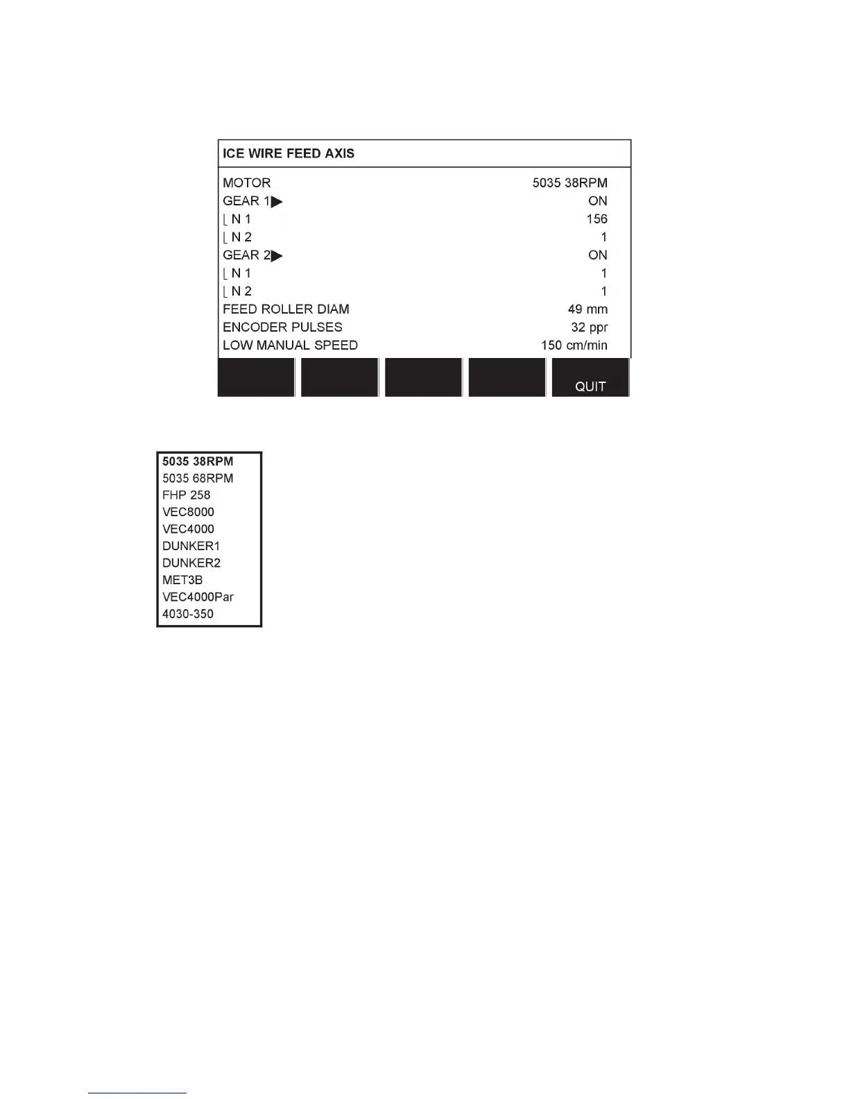 The ice wire feed axis settings must be identical to the wire feed axis.