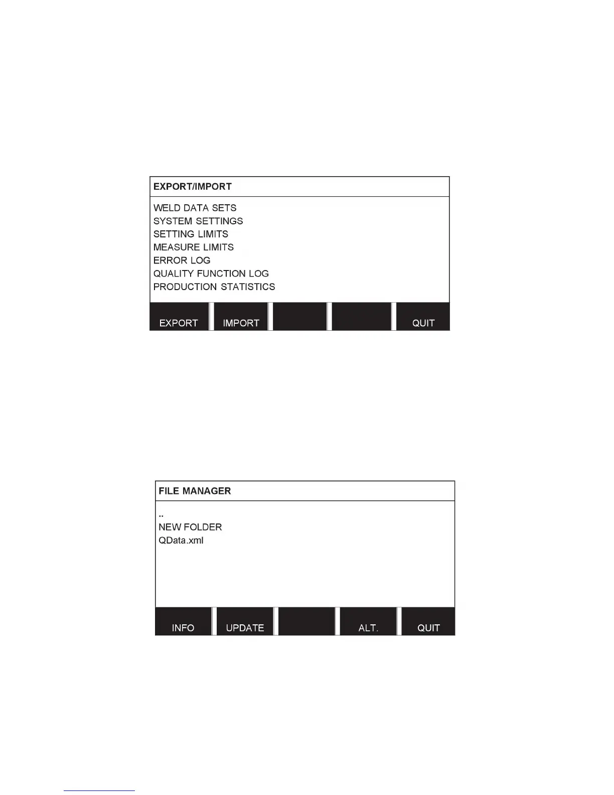 Select the row with the information that is to be transferred. Press EXPORT or IMPORT,