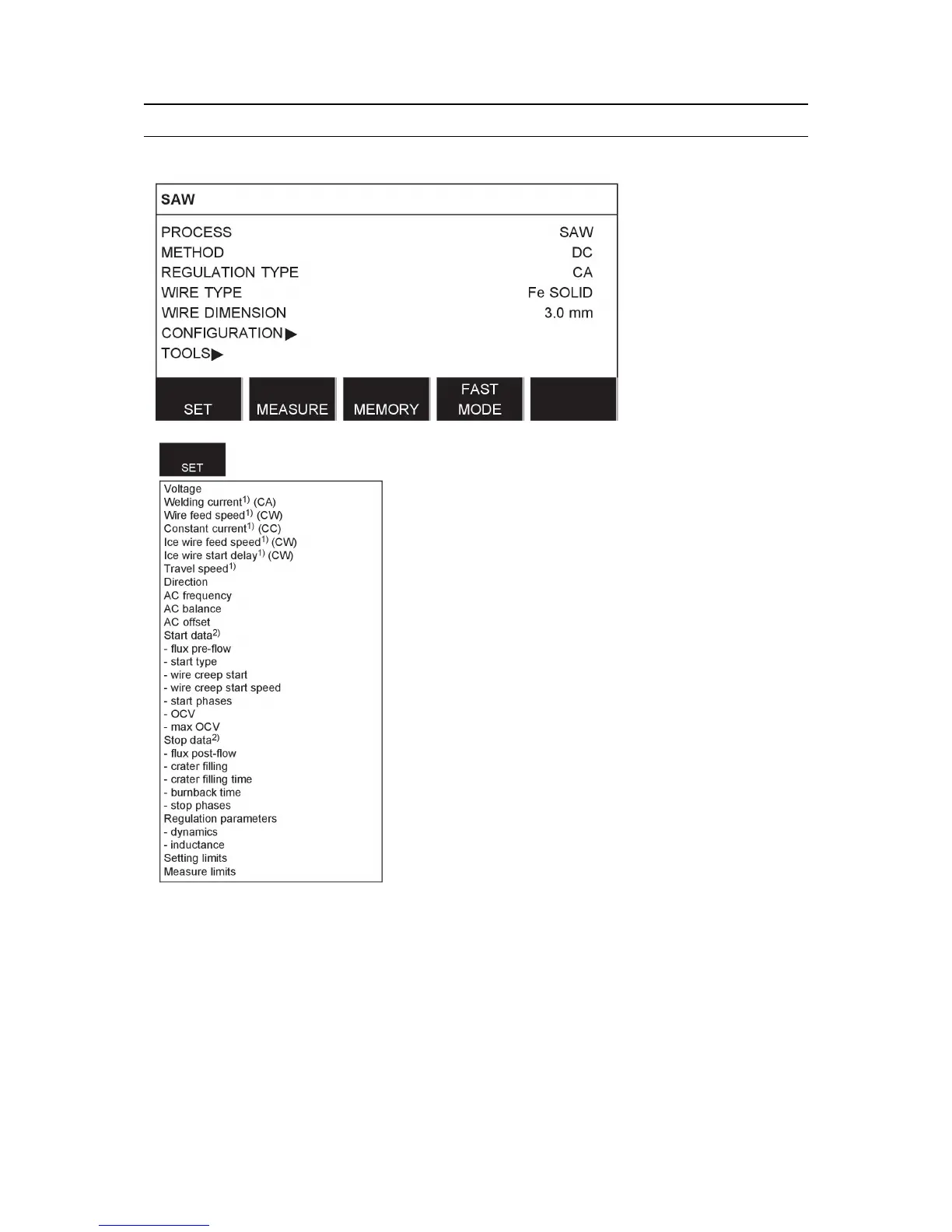ESAB A2 - Menu Structure Overview; SAW Menu Structure