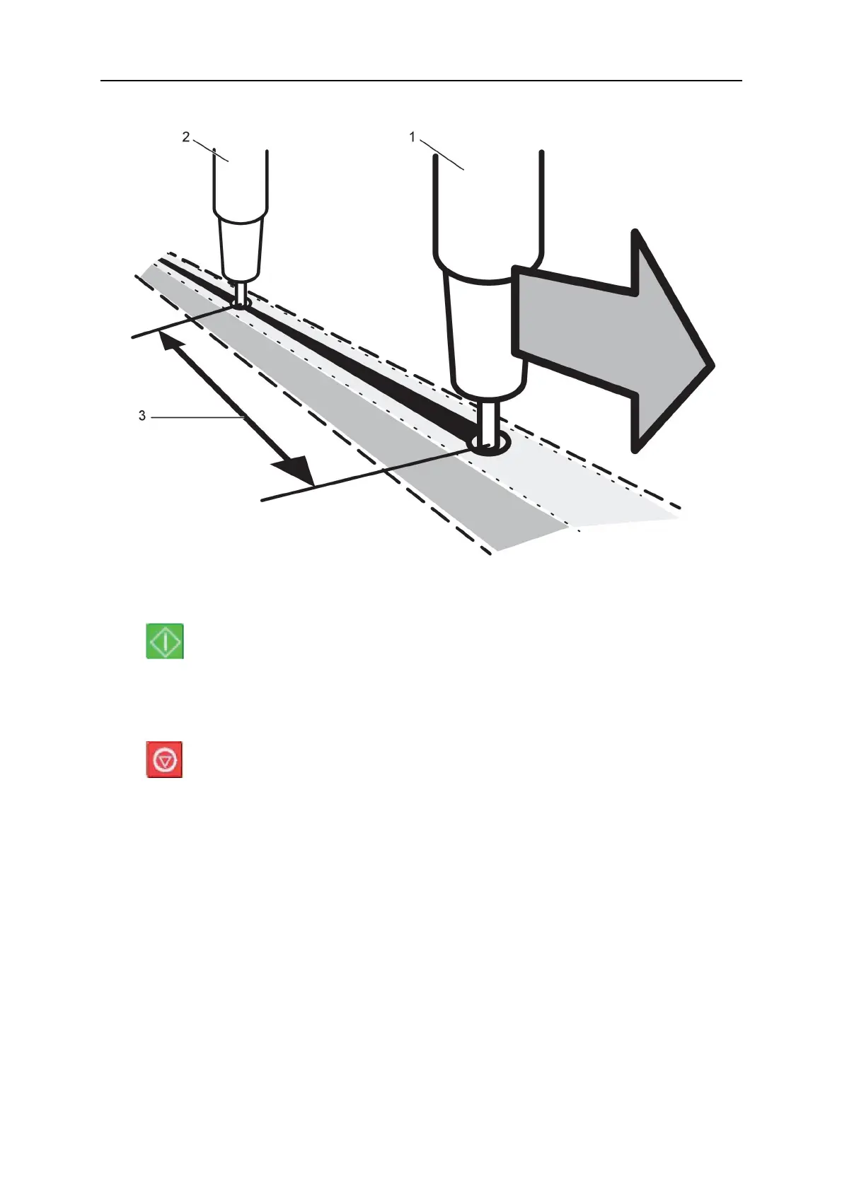 Welding head1 stops welding but travel motion continues.