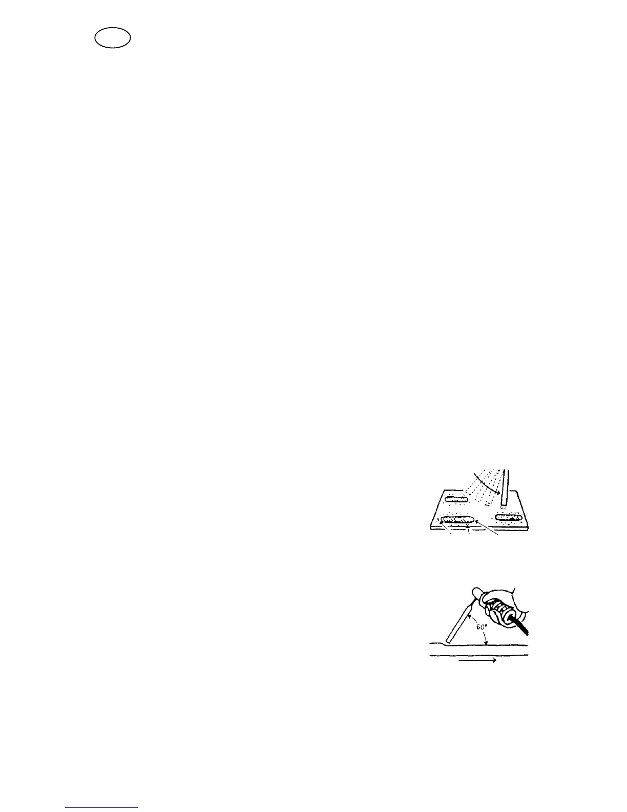 right. The electrode must be at an angle of 60° to the metal in