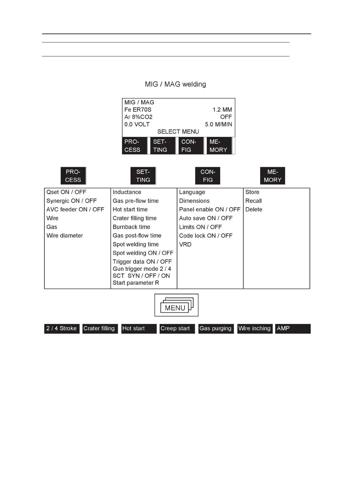 ESAB Aristo U6 - Menu Structure Navigation; MIG;MAG Welding Menu Flow Diagram