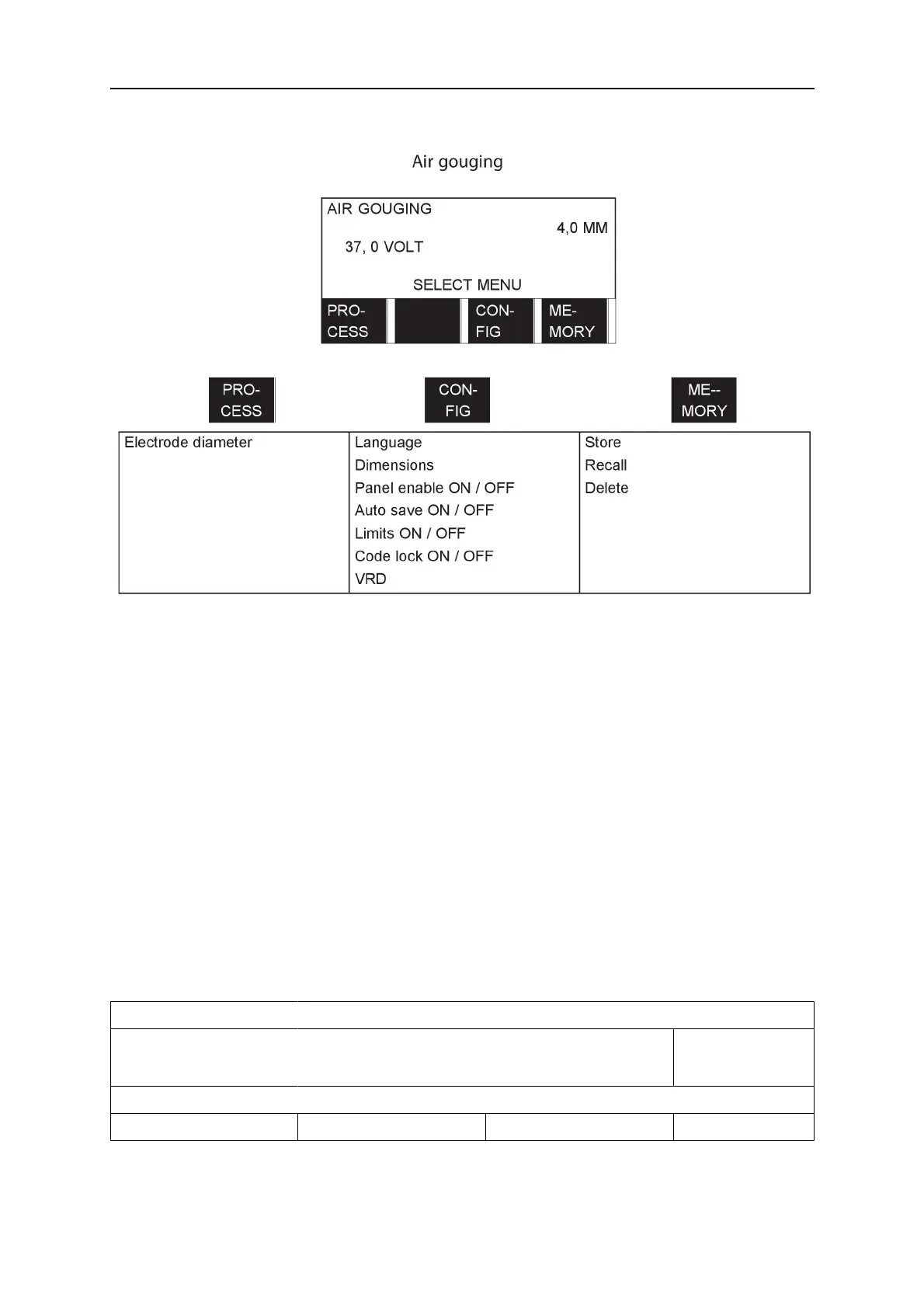 ESAB Aristo U6 - Air Gouging Menu Flow Diagram