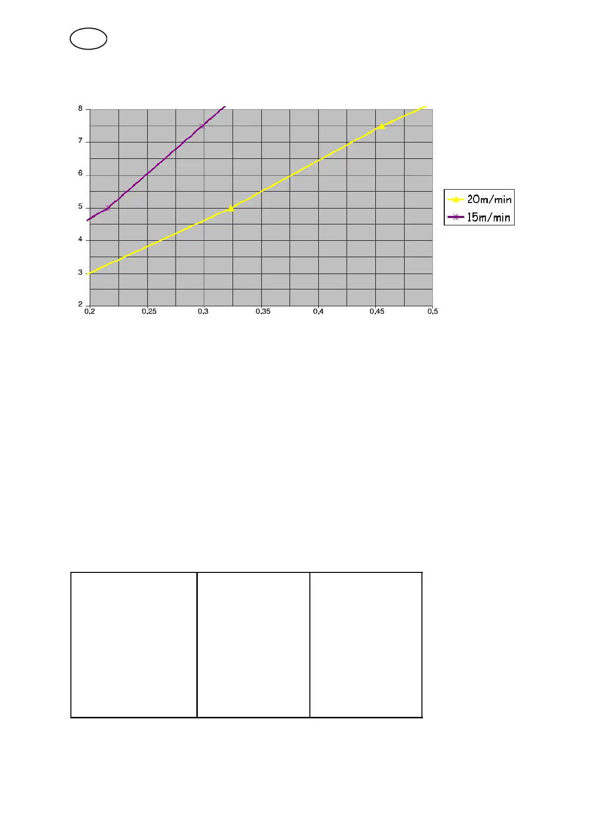 The graphs for 15 m/min and 20 m/min respectively refer to the primary wire feed