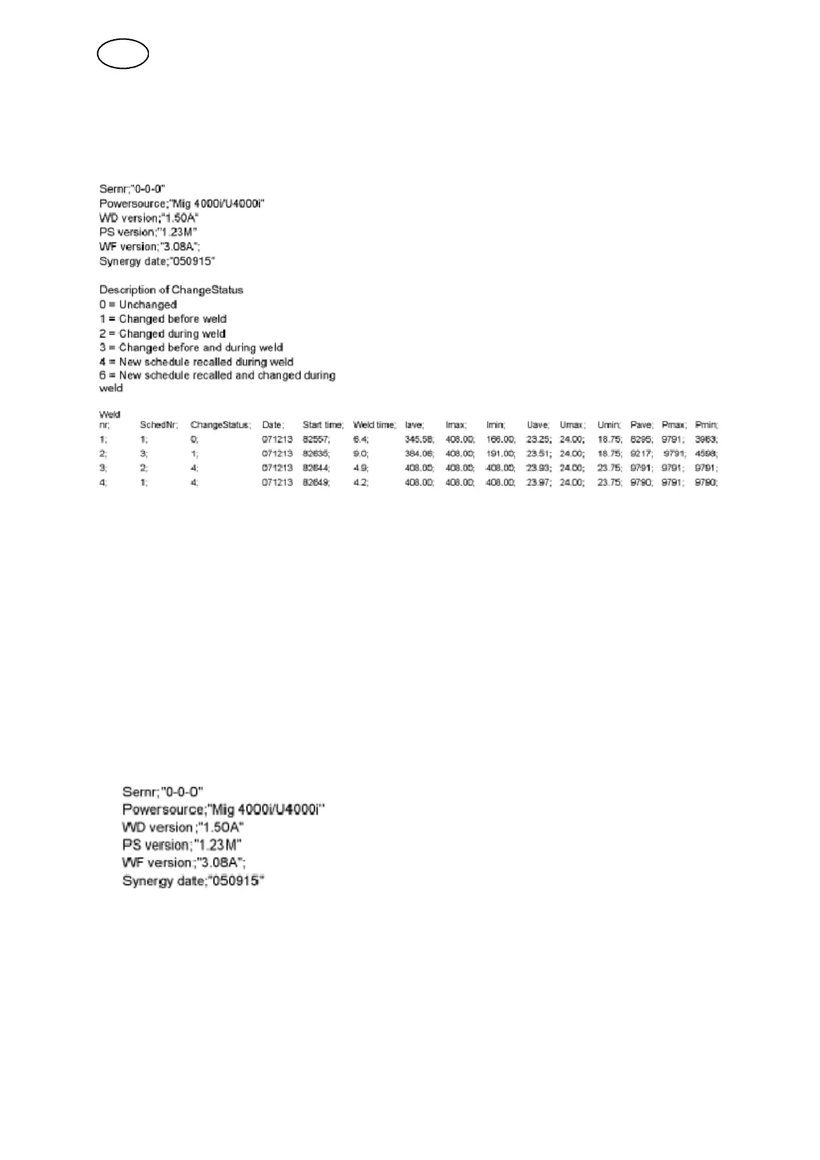 the welds. Differing data on a single row is separated by a semicolon. Quotation