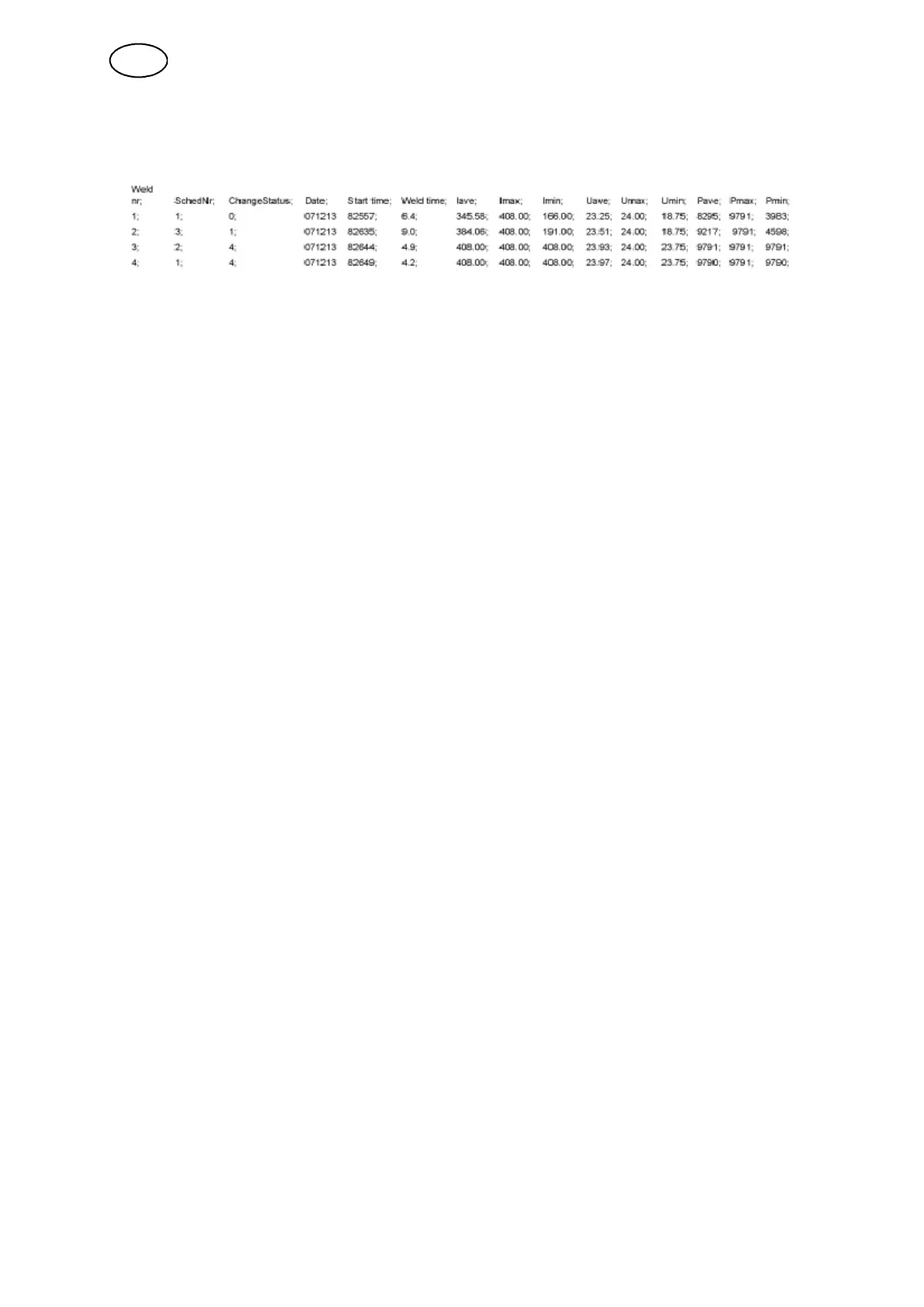 Weld no. In the example above, data has been stored for four welds, which can be read