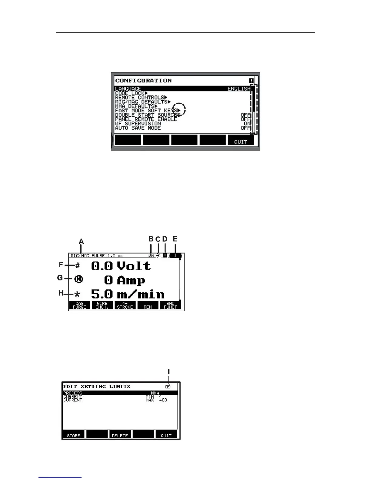 At the bottom of the display are five boxes containing text that describes the current function