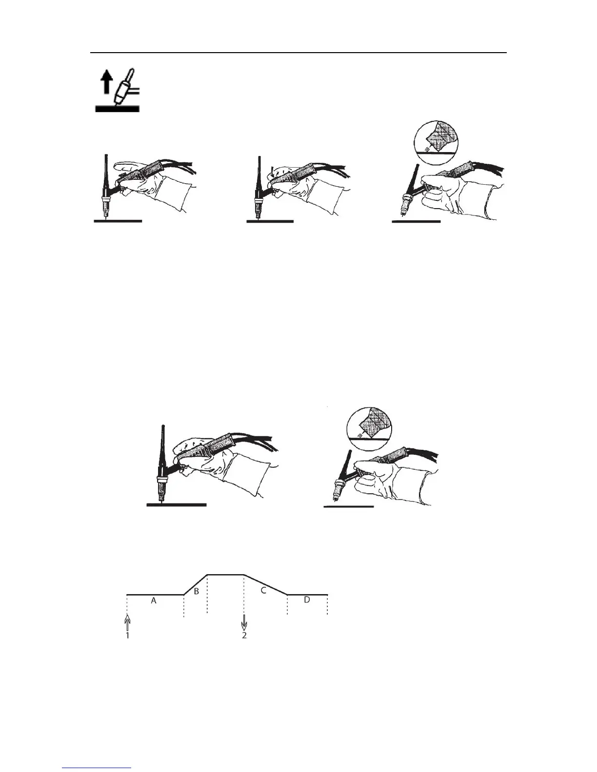 used) and strikes the arc. The current rises to the set value (as controlled by the slope up