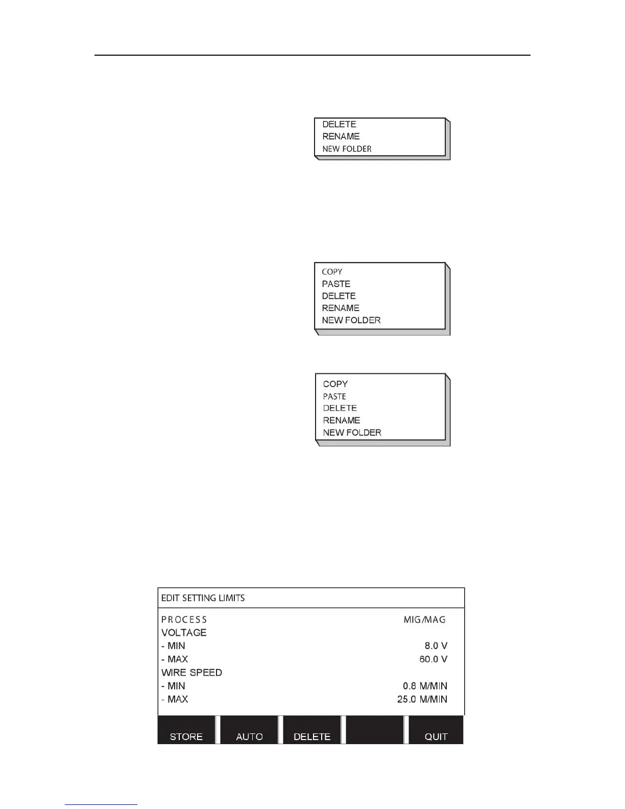 In this menu you set your own max. and min. values for various welding methods. The limits