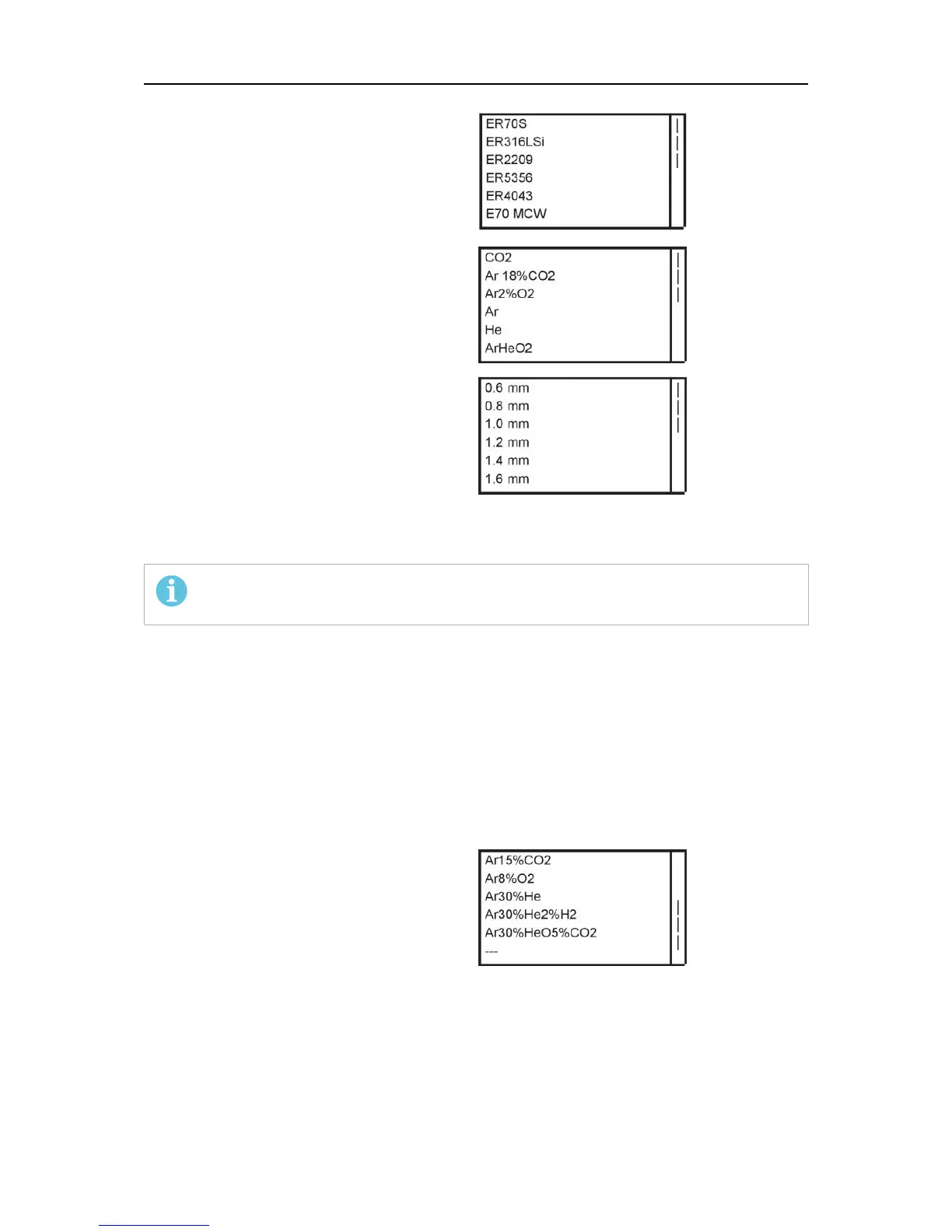 The lists of wire/gas alternatives can be extended with up to ten alternatives of your own. At