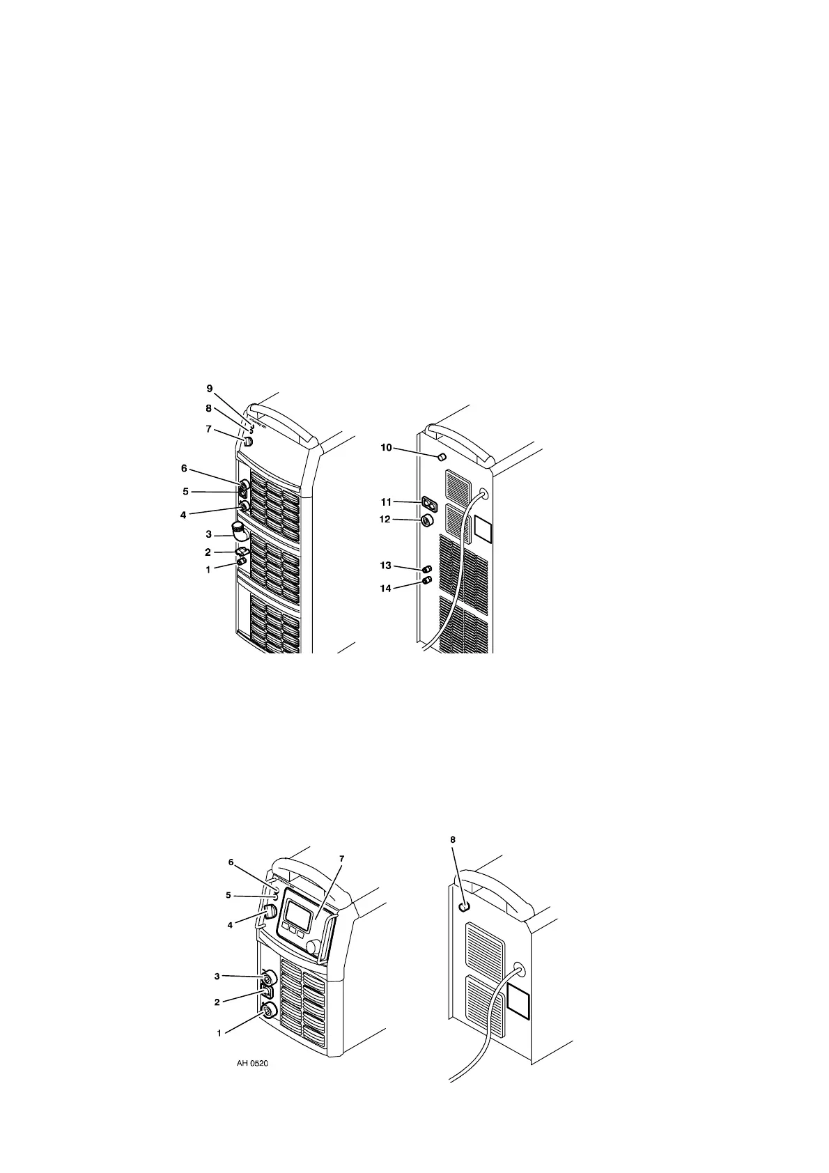 1 Welding current cable connector (+) 5 White indicating lamp, mains power supply
