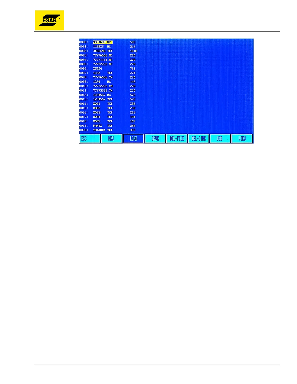 Editor, select DEL-FILE by pressing the【F4】key. A listing of files in the CNC’s memory will be shown