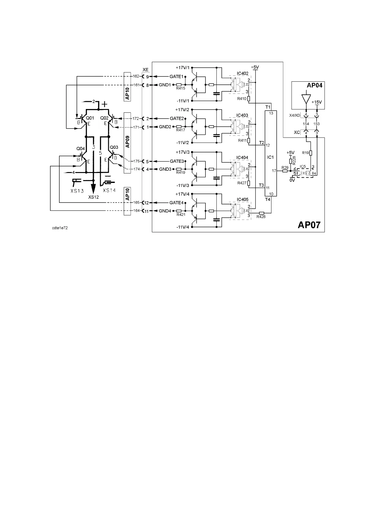 AP07, has deactivated the IGBTs. IC1 outputs T1 -- T4 are high (+5V).