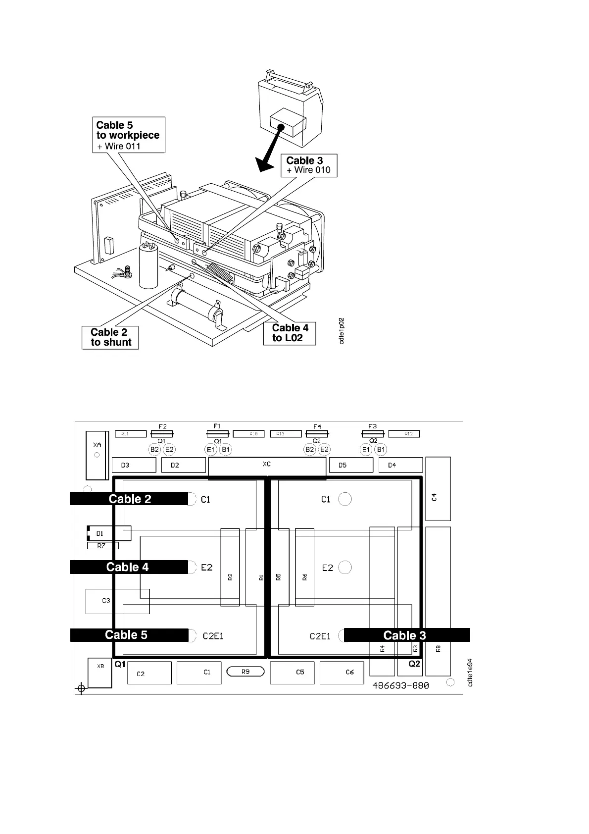 Circuit board AP09 in the DTE 200 and the cable connections to the AC IGBT modules