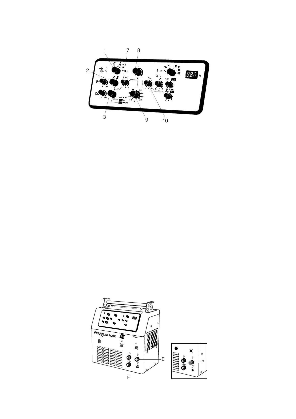 S For the shift function or pulsing, adjust the lower current value using potentiometer (9).