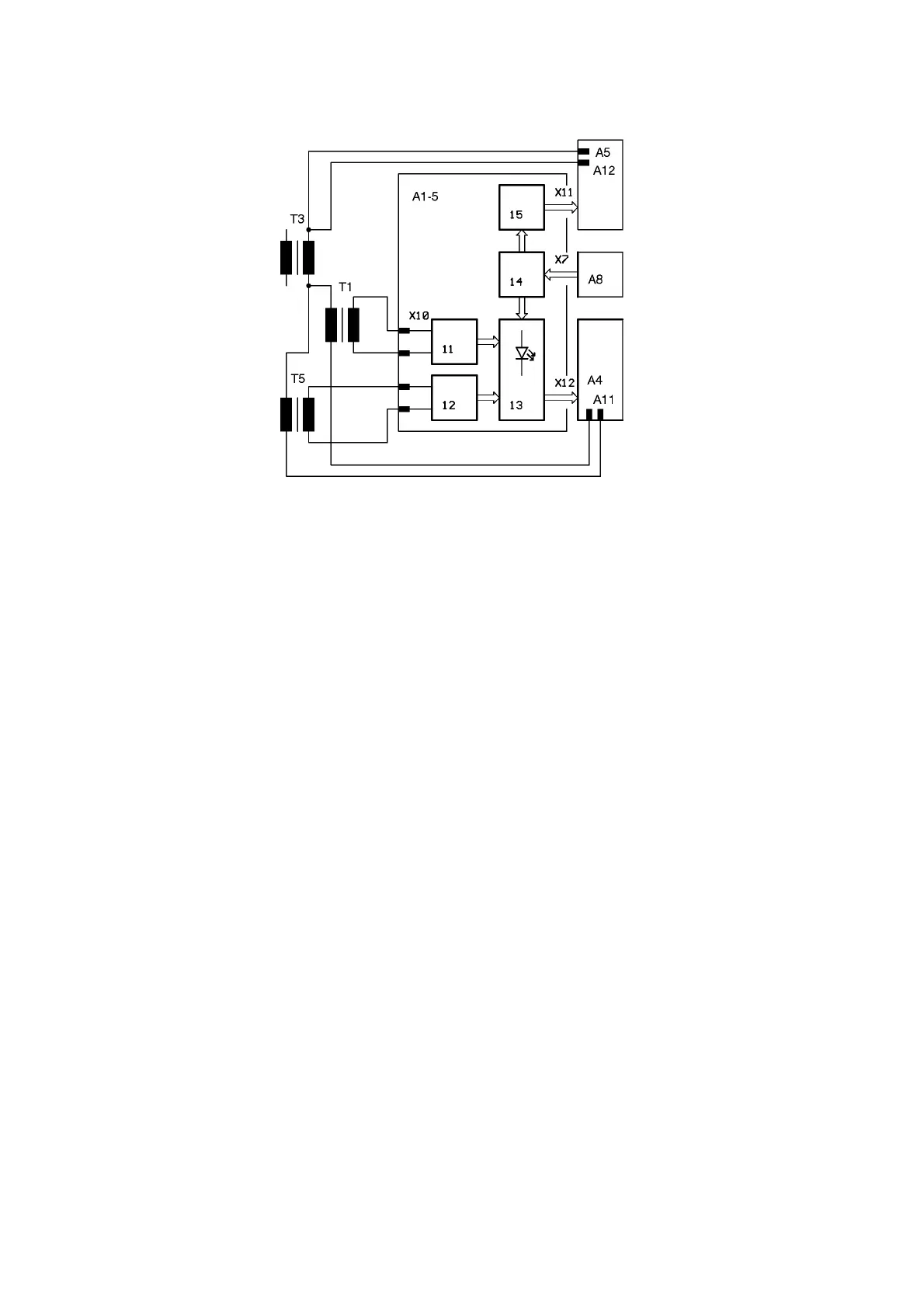 A5, A12, A4, A11, T3. Also check the electrical connections on the current transformers T1 and
