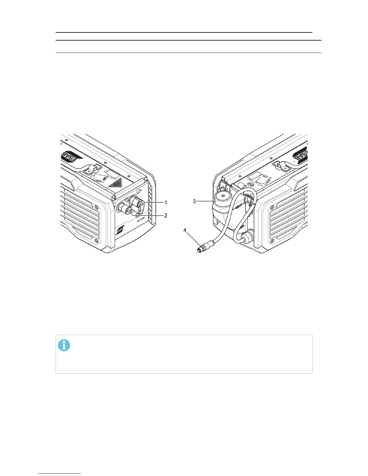 After connecting a torch, check that the coolant level is correct. When adjusting