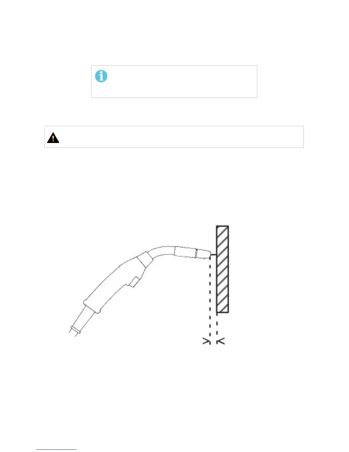 When you hold the welding torch approximately ¼ in. (6 mm) from the piece of