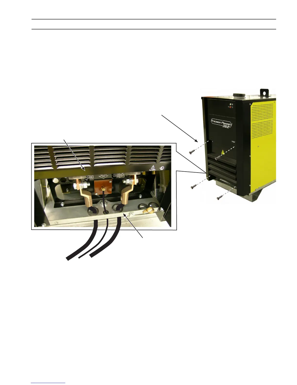 1. Open access panel on the lower front of the power source by removing four M6 screws.