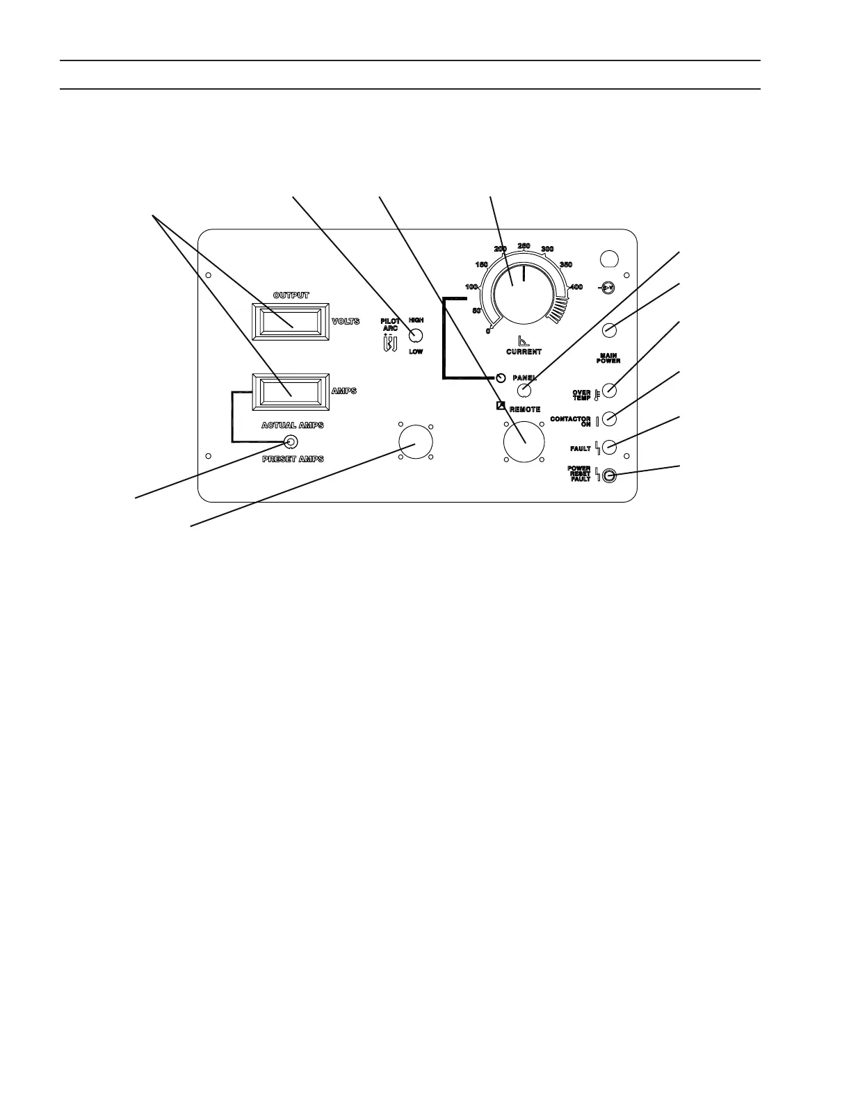 Skala for EPP-400 er vist. EPP-400 har et strømområde på 12 til 400 A. Brukes bare i betjeningspanelmodus.