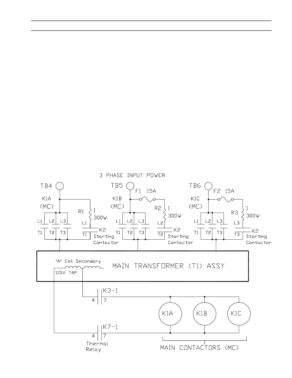 for each primary input phase. Thus, K1A, K1B, and K1C switch phases A, B, and C respectively to the Main Transformer, T1.