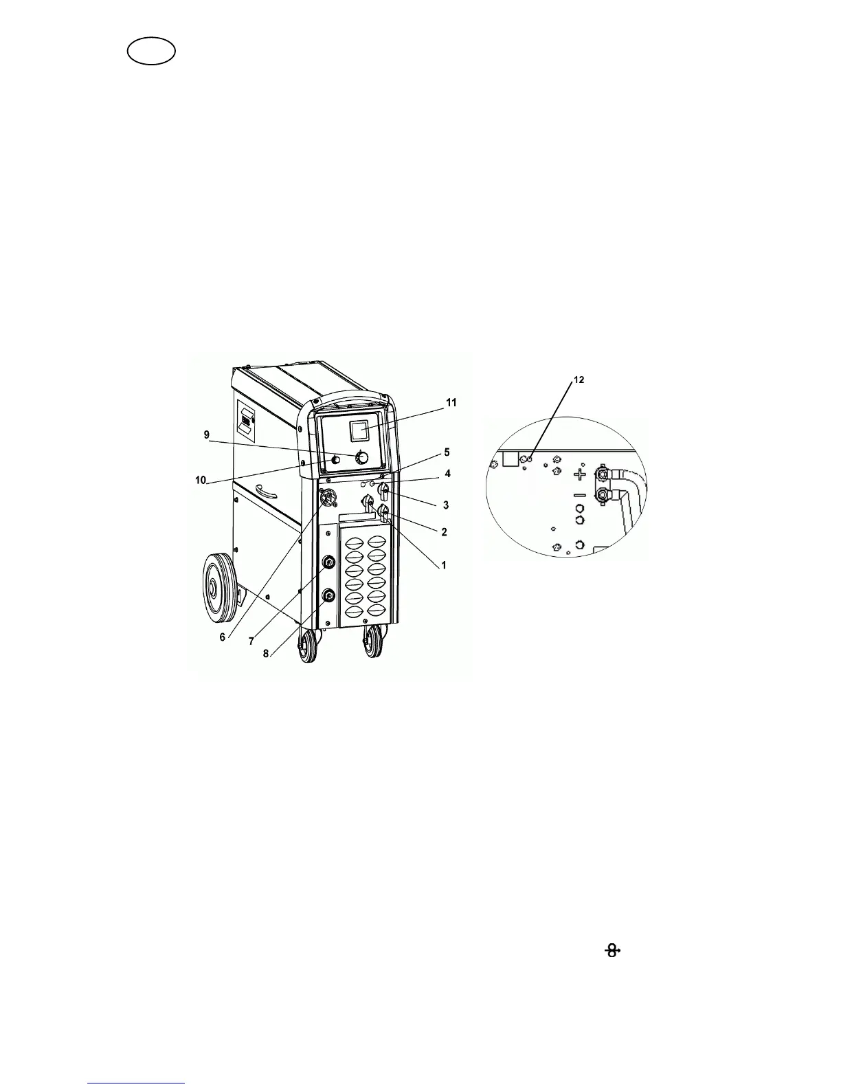 6 EURO − connector (for welding gun) 12 Knob for burn−back time setting