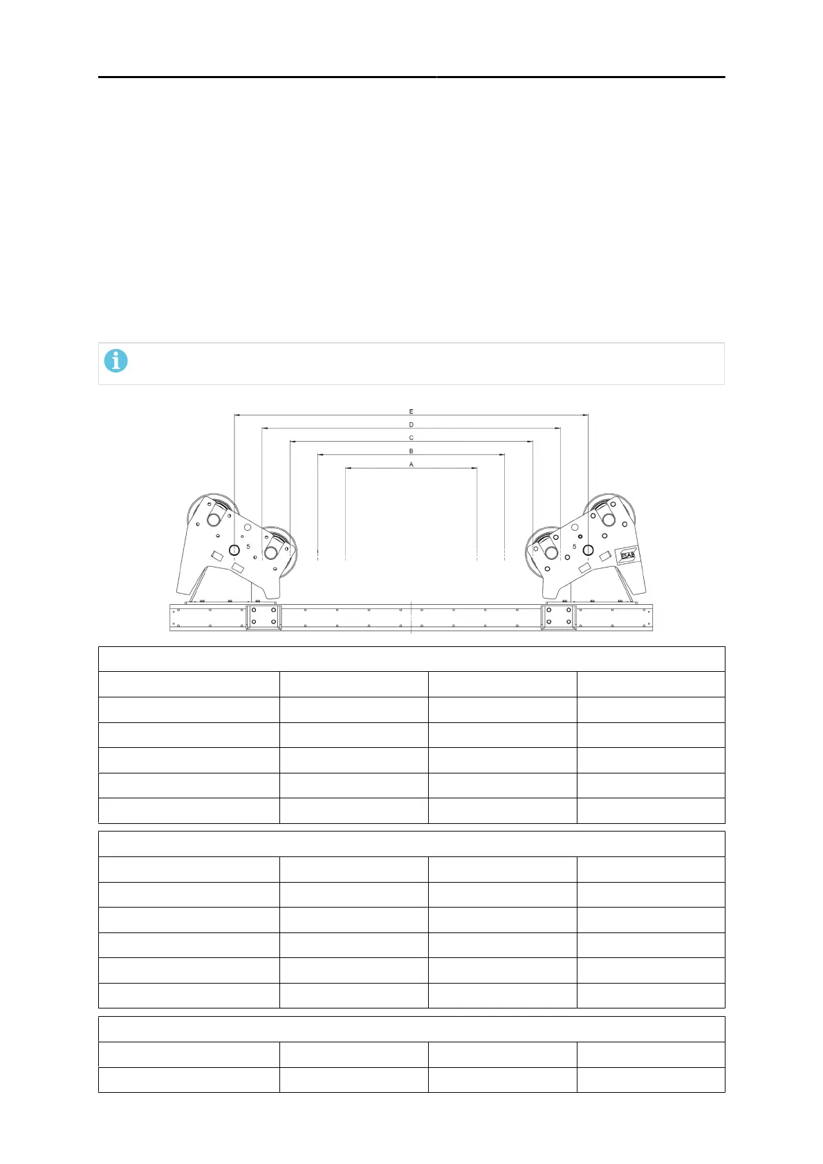 5. See tables and the picture below for correct distances between the two wheels stands.