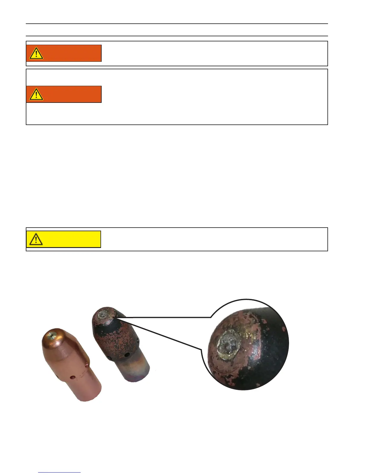 wear limit, damage to the torch and power source may occur. Nozzle life is also greatly reduced when using the electrode