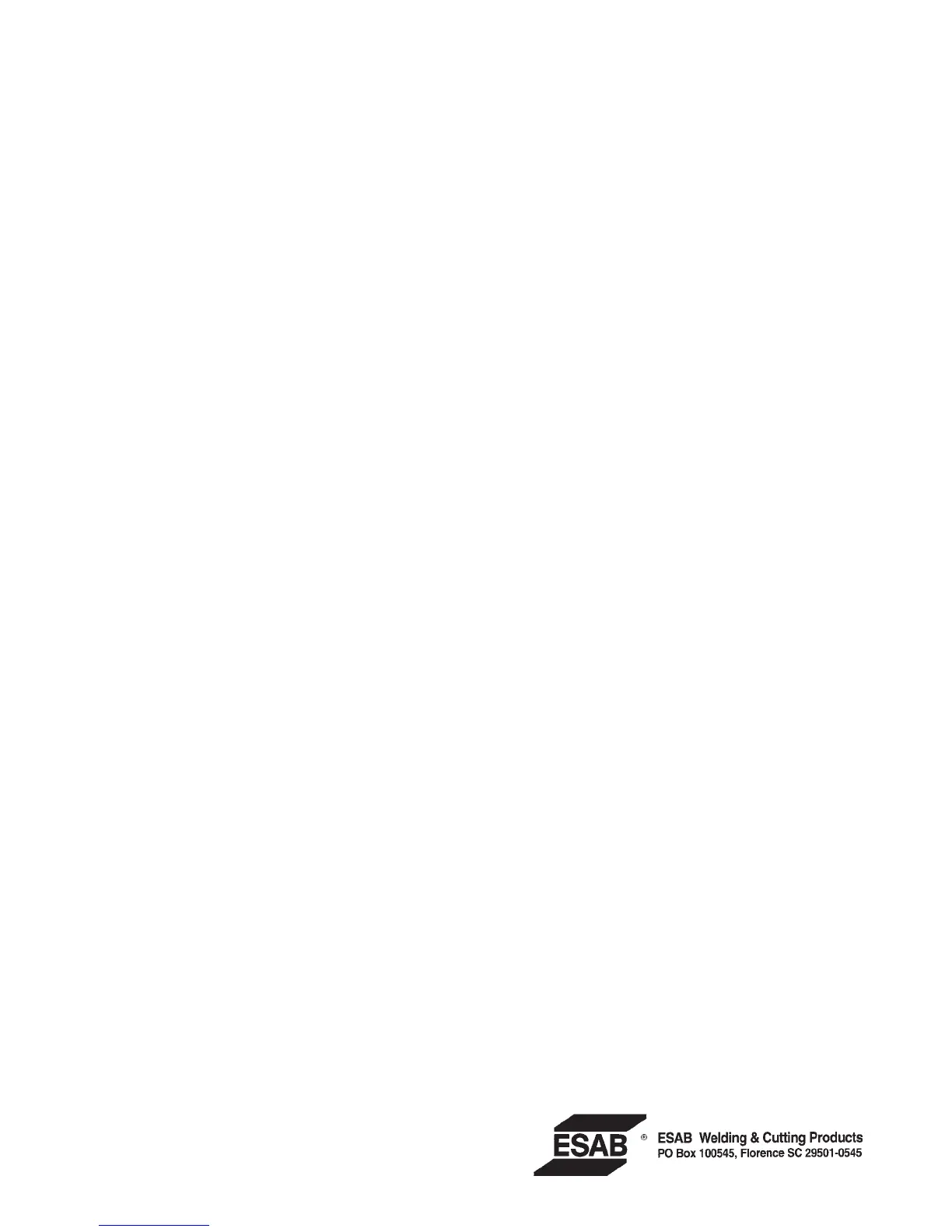 Telephone: (800) ESAB-123/ Fax: (843) 664-4452 Hours: 8:00 AM to 5:00 PM EST