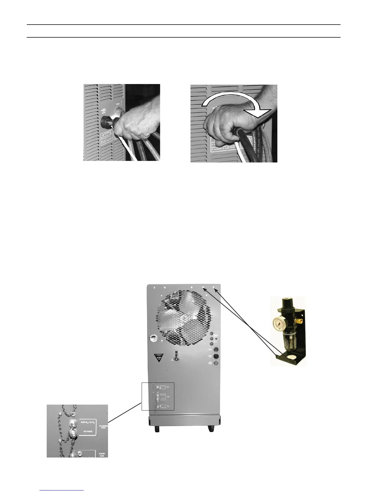 5. Connect air hose assembly (P/N 678152) to lter regulator outlet tting and to the N2/Air plasma gas tting on the rear