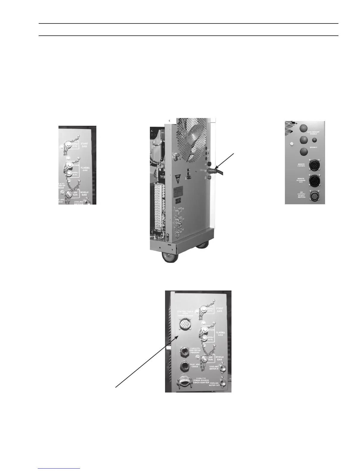 6. Connect start gas, shield gas and cut gas hoses from gas supply to the appropriate labeled connection points on the