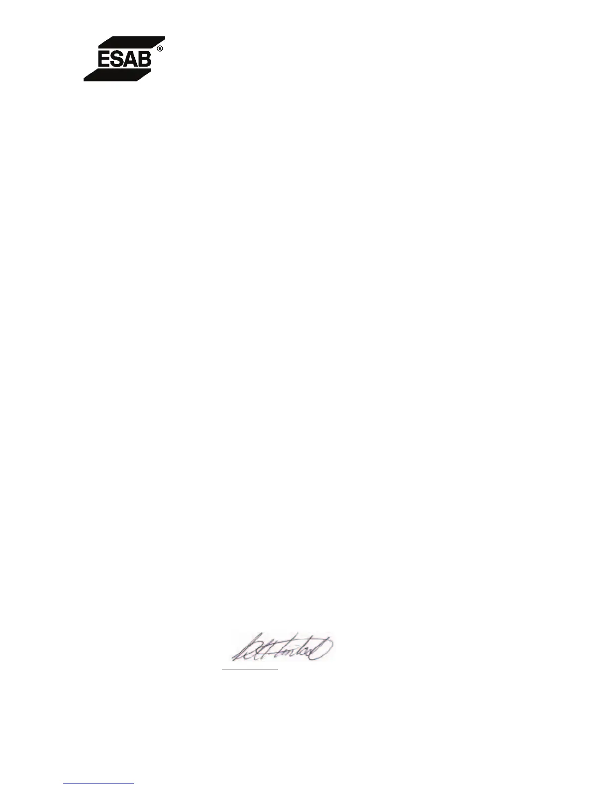 By signing this document, the undersigned declares as manufacturer, or the manufacturer’s authorised