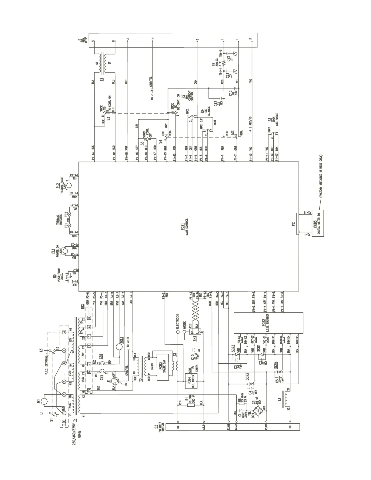 Figure 5-3. Schematic Diagram - Heliarc 252/352 AC/DC, 230/460/575 vac, 60 Hz, 1 ph.